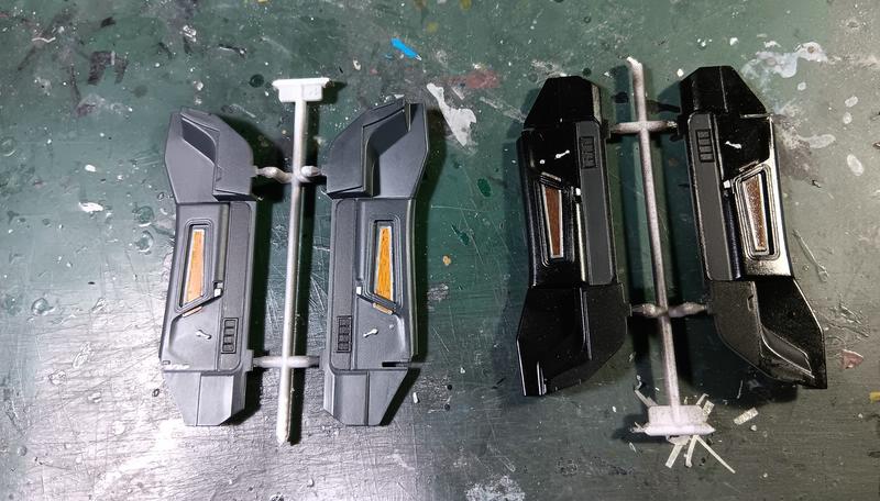 damit diese nicht mit dem Gummi reagieren wurden die Flanken mit Vallejo Satin Varnish eingestrichen