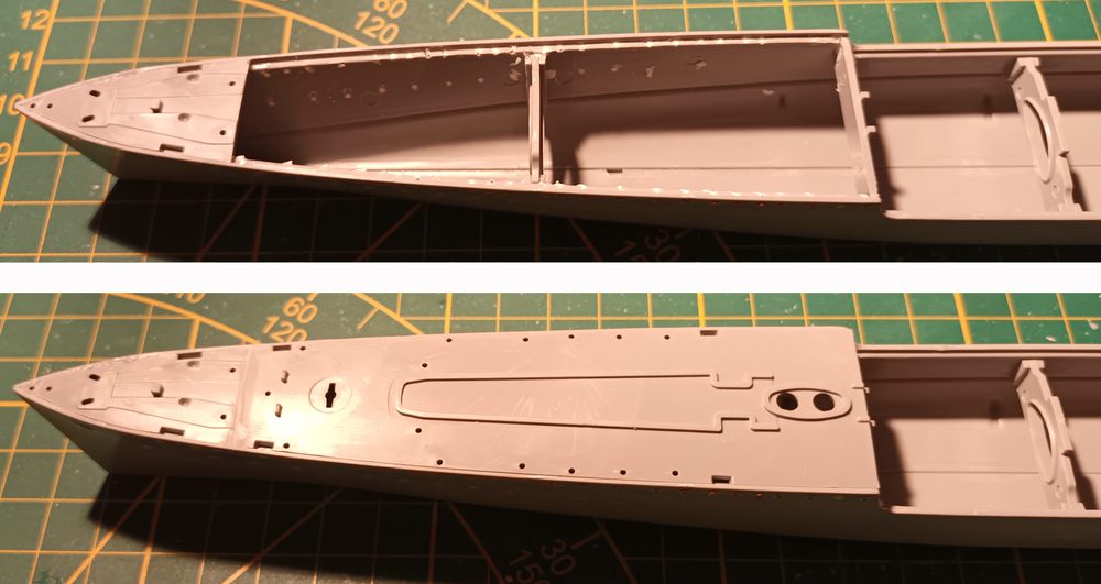Die Steuerbordseite ist jetzt auch verbohrt und "verbullaugt". Aber ich muß das mit den Bullaugen nicht bei jedem Modell haben.