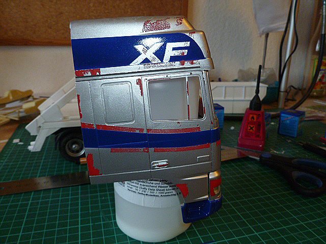 Hallo Zusammen, schön das noch ein paar da sind die meinen BB mit verfolgen und Komentieren, da es leider bei mir in letzter Zeit sehr langsam voran geht habe ich heute doch was geschafft habe die Kotflügel hinten angebaut ( DANKE nochmal an Silvio) finde das Bild jetzt stimmiger mit Orginal DAF Kotflügel auch der Tank wurde gekürzt und eingepasst auch der erste spachtel und Schleifgang ist schon getan.