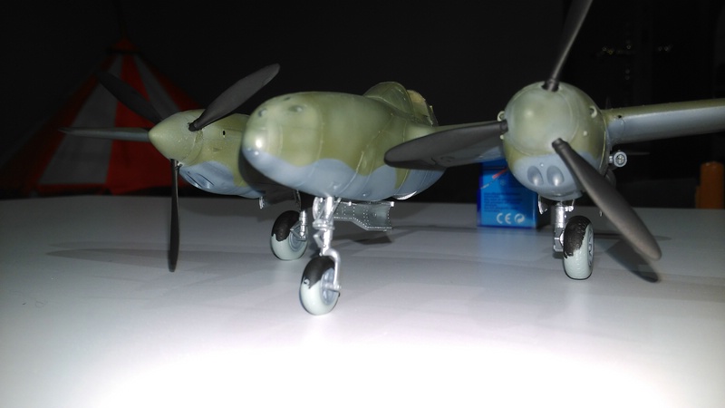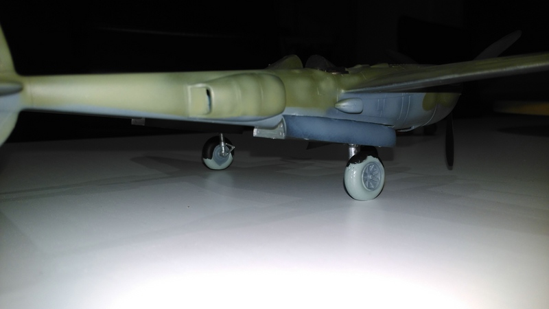 So, 'n Stündchen an der Xbox gewesen, da bekam ich dann Lust weiter zu machen. Fahrwerksklappen sind lackiert, vordere Klappe angebracht. Ganz OK geworden. Aussentanks habe ich grundiert. Morgen noch die Abgasanlage und Kanonen dran, und eine Antenne glaube ich, Dann bin ich bereit für die erste Klarlack Schicht sowie washing mit Ölfarben.