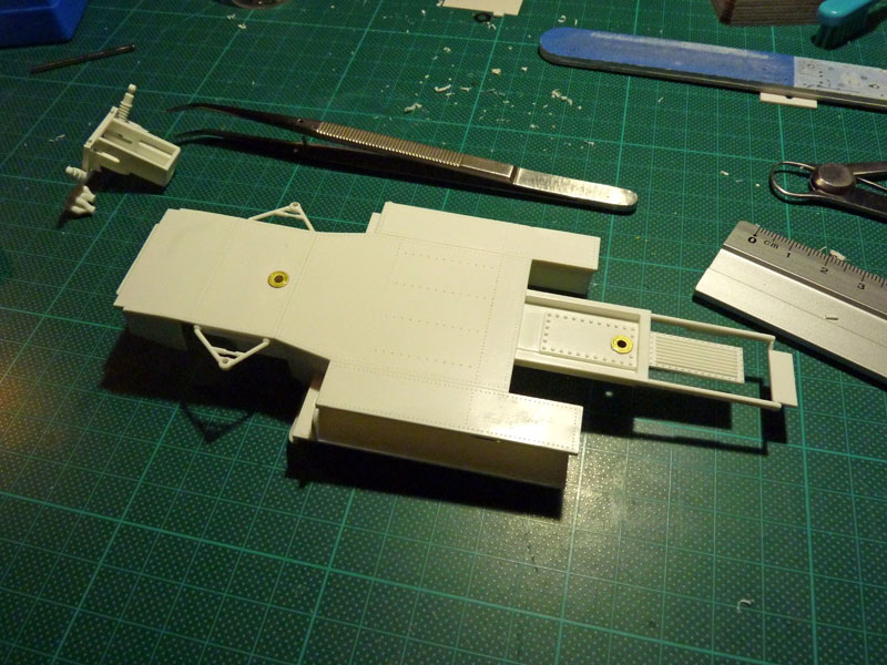 Gleiches auch in dem vorderen Cockpitbereich. Beide Befestigungen liegen in einem nicht sichtbaren Bereich und werden demzufolge später nicht mehr zu sehen sein.