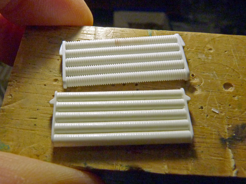 Beim Kühler hätte ich wohl Rundstäbe mit entsprechendem Draht umwickelt,