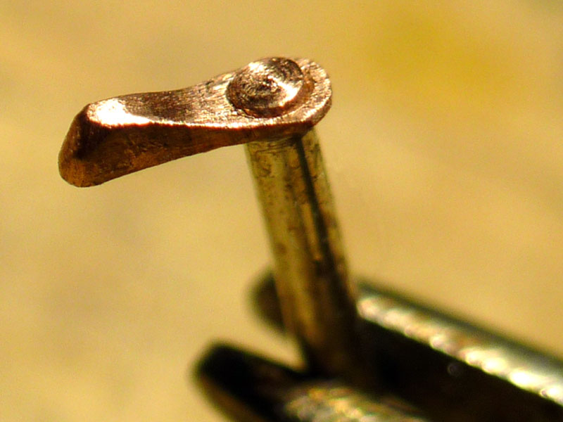 Der Gurtöffner ist aus einem Stück Kupferdraht mit der Zange gequetscht. Komischerweise hatte das PE Gurtschloss nur mittig eine Bohrung ohne Abdeckung.