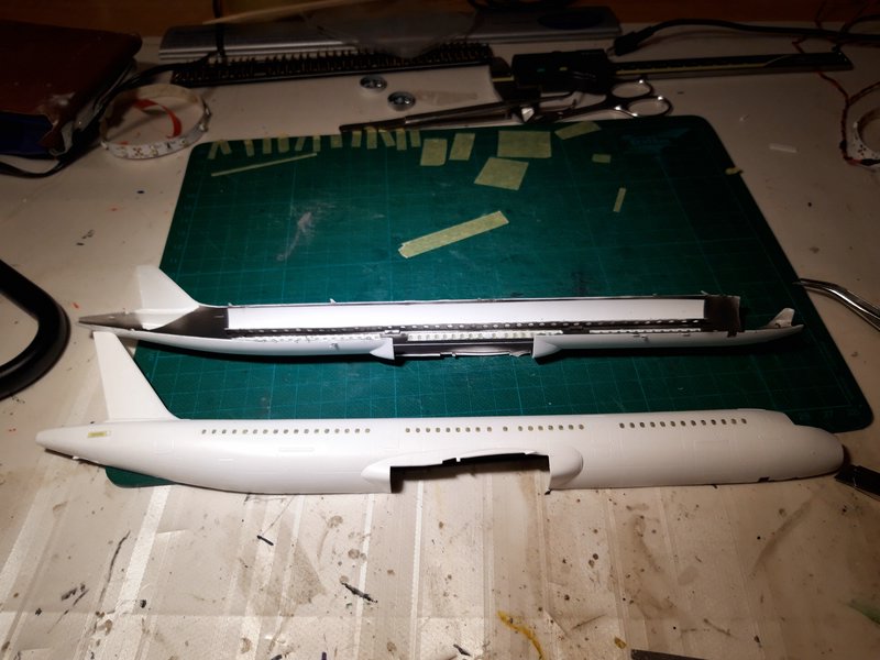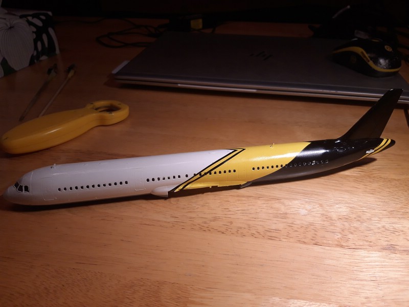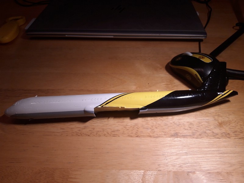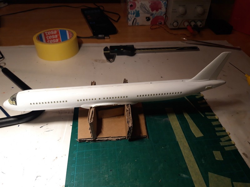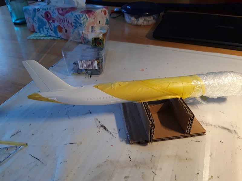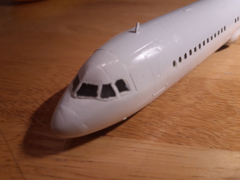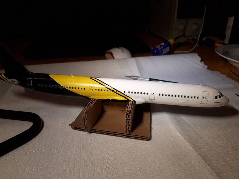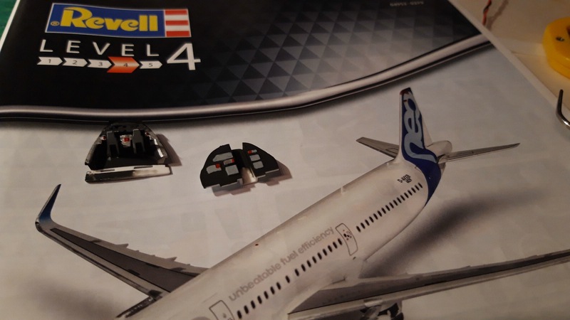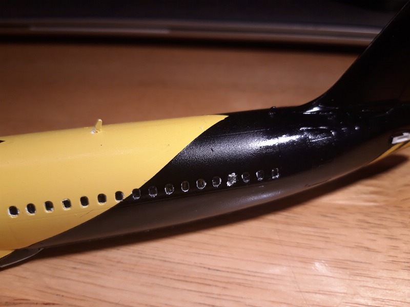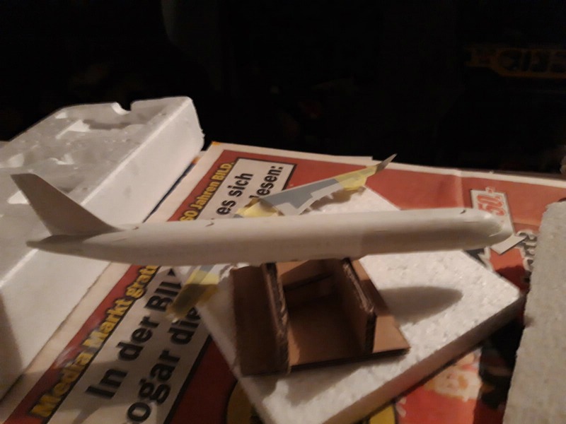 ) ...Also versuche ich es bei der A321 anders, erst innen, dann montieren, nachbessern, lackieren und dann Decals ... dann nochmal Klarlack zum Versiegeln ...
