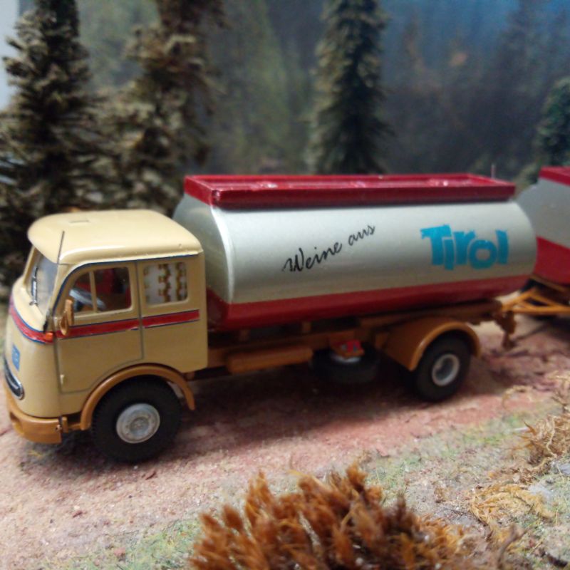 der Lastzug ist in Tirol in Östereich zugelassen ,Dieser Tirol Schriftzug wurde in den 1970 Jahren für die Turismuswerbung verwendet