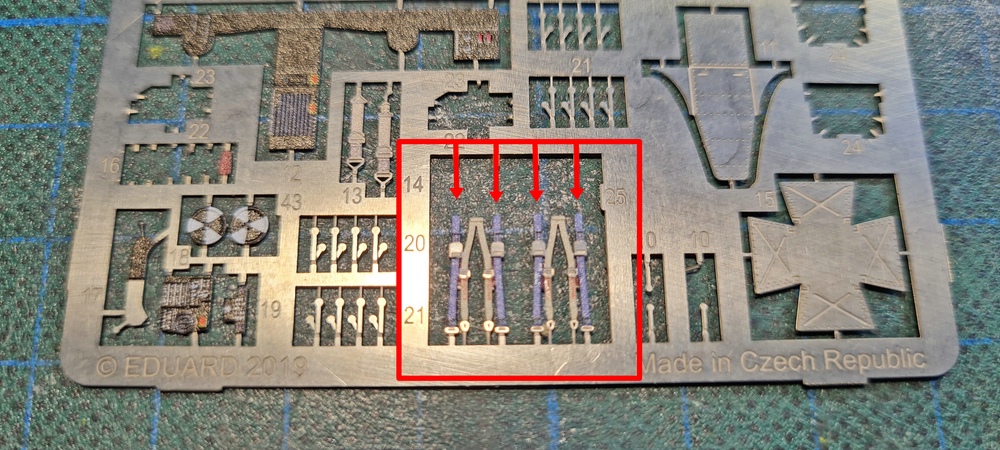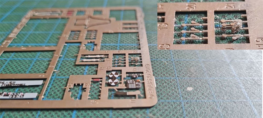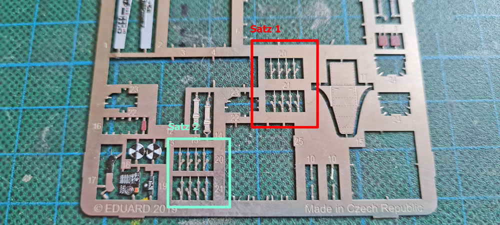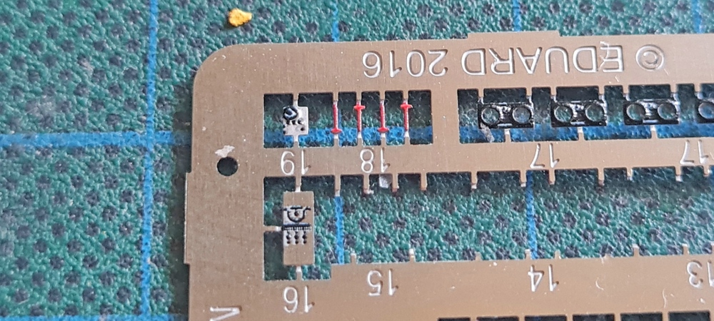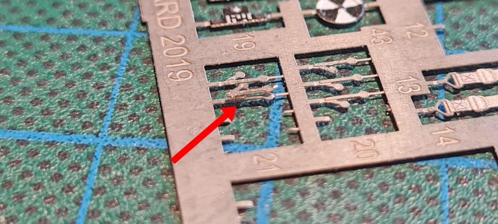 Also mal auf dem Ätzteilrahmen geguckt, was sich hier als Abstandshalter verwenden ließe und dabei bin ich auf die kleinen Halterungen an denen die Ätzis hängen gestoßen, Breite stimmt und Länge auch und mal einen Abgeschnitten.