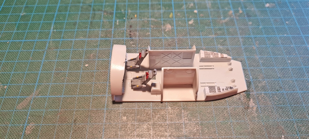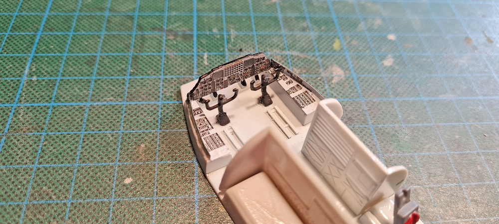 Das aber dauert, mehr als eine Stunde, so musste ich mir noch eine weitere Lösung überlegen, aber bis dahin habe ich im hinteren Bereich, der Cockpitsektion weiter gemacht.