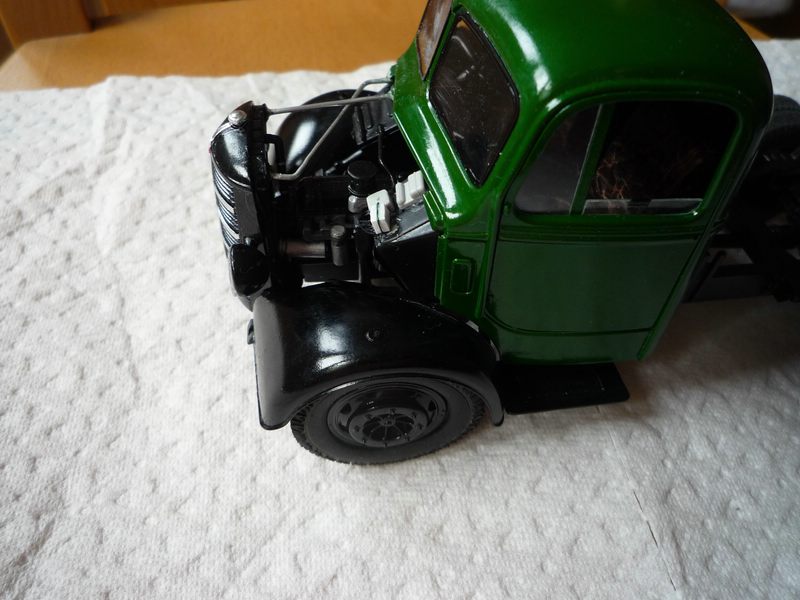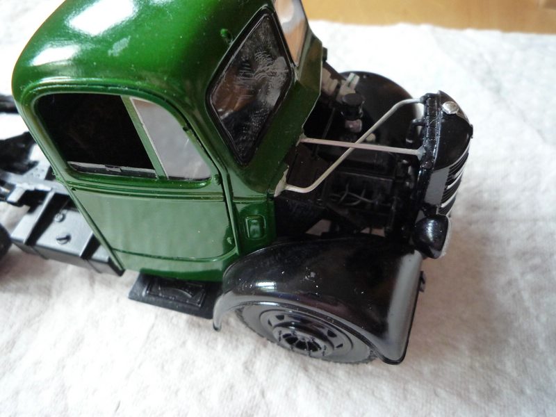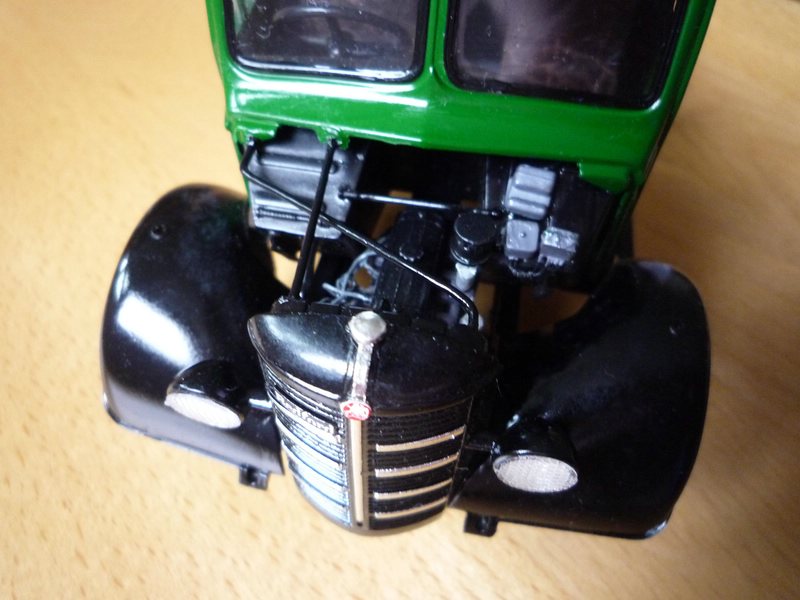 Frank, ist doch gar nicht schwer. Der Zusatzscheinwerfer ist zu dick, der müsste etwas flacher sein; Haube schaut etwas schief aus, zumindest hat die zum Kühler hin einen Spalt; der Lack hat 'ne leichte Orange, der Steg an den Seitenscheiben dafür sogar noch etwas mehr; die Halter für's Nummernschild sind auch schief; ...