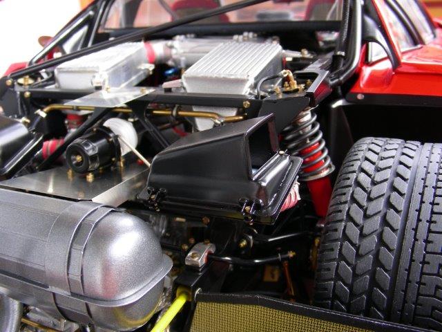 der f40 hat am oberen ansaugtrakt die ferrari schrift natürlich angegossen, da stört mich tatsächlich das nur aufgeklebte ätzteil, das hätte verschliffen gehört, so wie es auch am getriebe ist,
