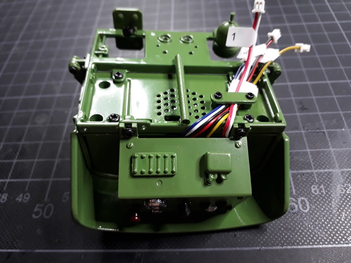 Ich testete mit einem Messgerät nachdem ich die Miniatur Steckverbinder verbunden und die Baustufe 22 beendet hatte ob die Taster, die LED und der Lautsprecher Kontakthaben an den Ausgängen Richtung Hinterachse.