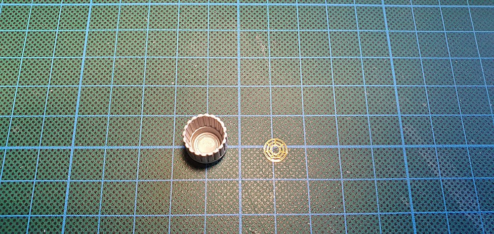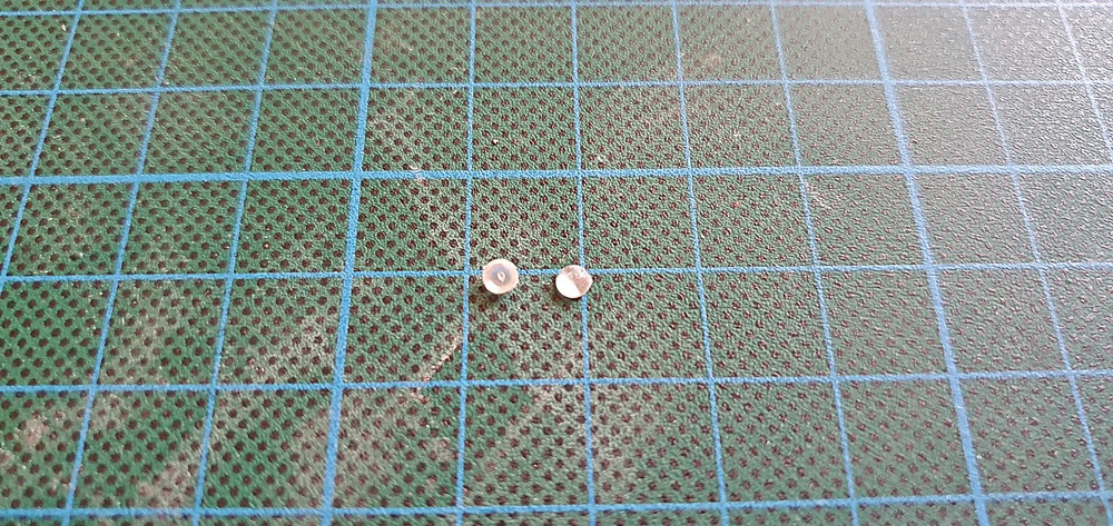 Da mir das aber irgendwie nicht plastisch genug wahr, habe ich mir aus einem 3mm Rohr, Innendurchmesser 2mm, vier 1,5mm starke Stücke geschnitten und dann an die Gitter geklebt.