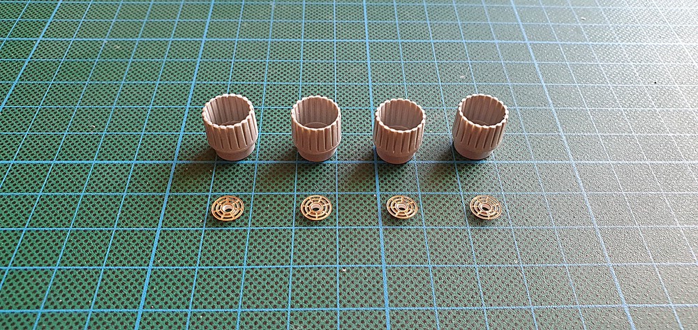 Nun fehlten nur noch die acht Räder, für außen, die habe ich aber gestern nur zum bearbeiten fertig gemacht, denn irgendwie war meine Konzentration dahin und Zeit für das Abendessen war auch schon wieder und danach war ich einfach zu Müde :grins: