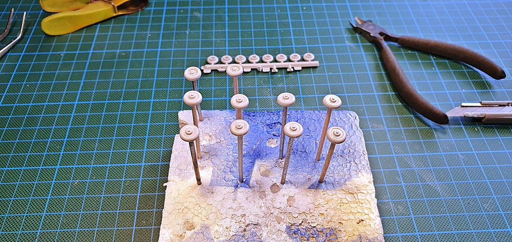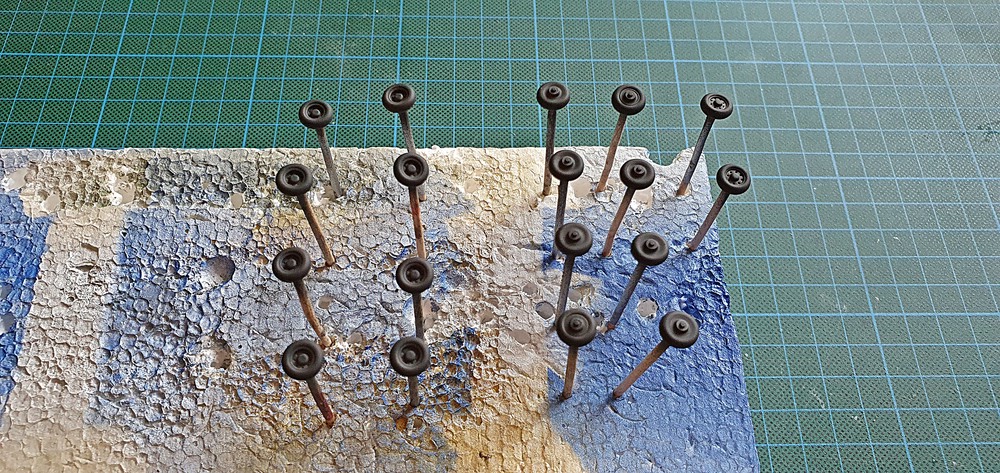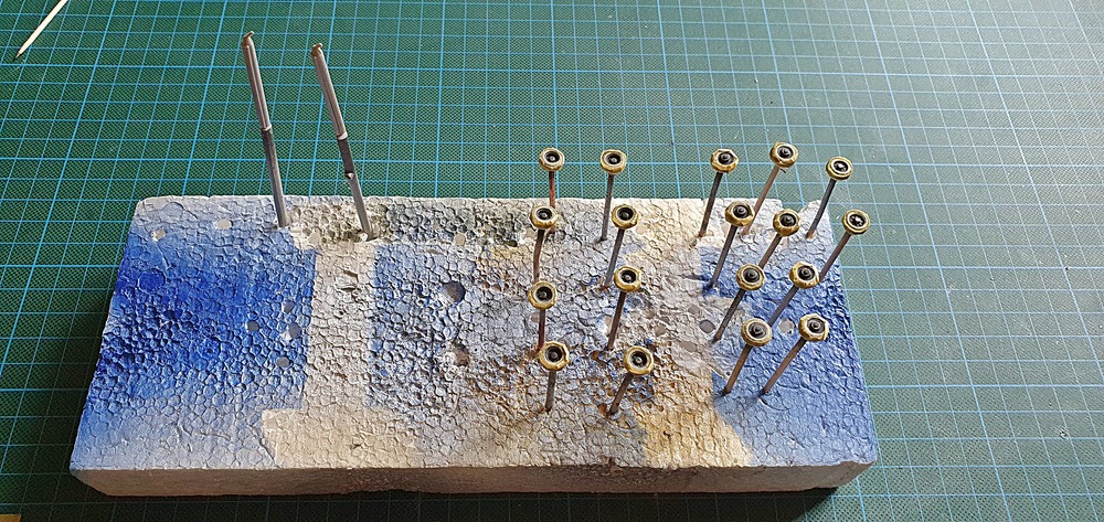 Und damit mir hier auch kein Rad verloren geht, wurden sie gleich nach der Bearbeitung, in einen Styroporblock gesteckt.