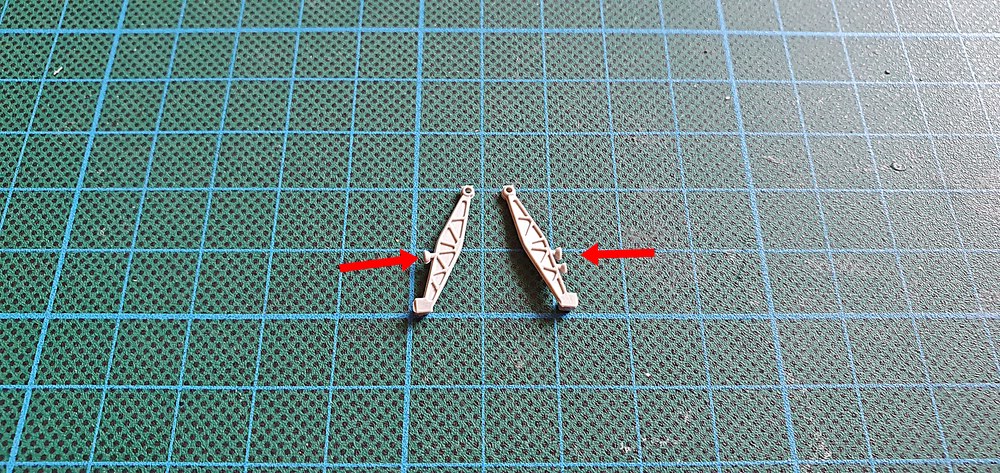 Dazu habe ich gestern erst einmal, die Radträger geschliffen und an den Hauptfahrwerksteilen angeklebt.