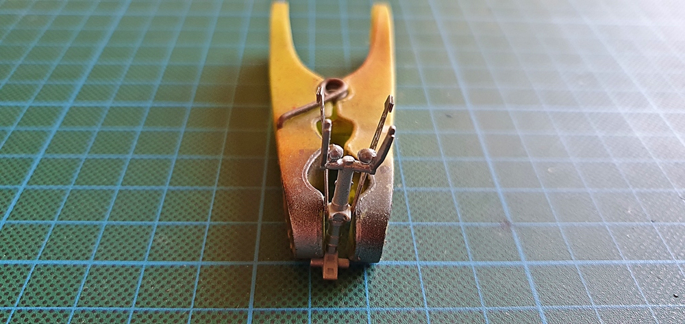 Allerdings hat das dann ohne ein paar Tapestreifen, nicht funktioniert, aber wie ihr nun sehen könnt steht er auf seinem Fahrwerk, auch wenn das sehr filigran ist und ich ihm nicht noch mehr Gewicht zumuten möchte.