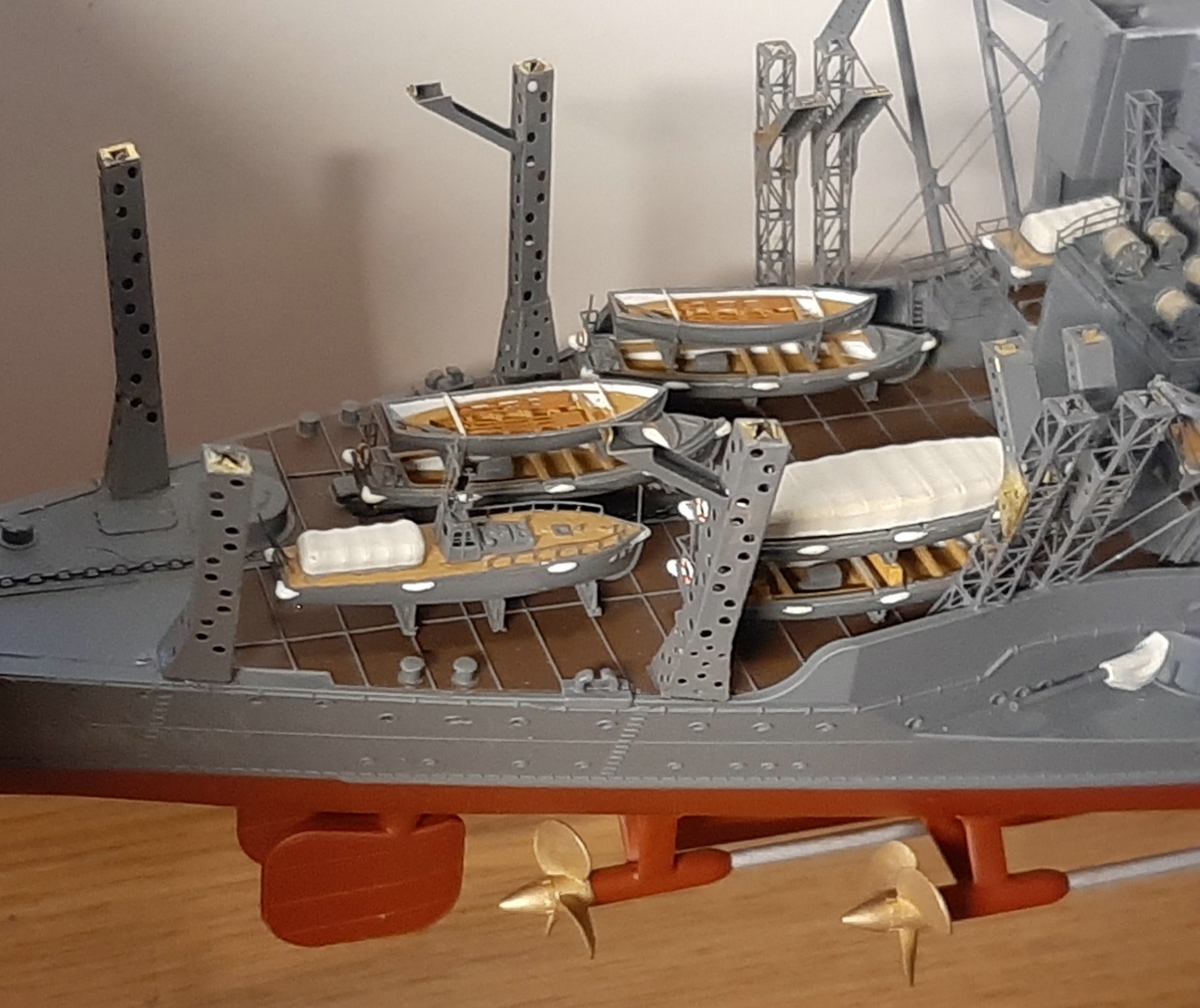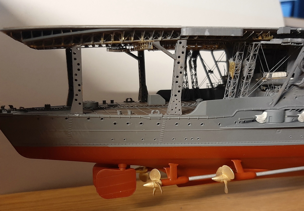 Und die Boote endgültig verklebt. Als nächstes wird das Flugdeck komplettiert, vorher werde ich darauf aber einige Markierungen anbringen.