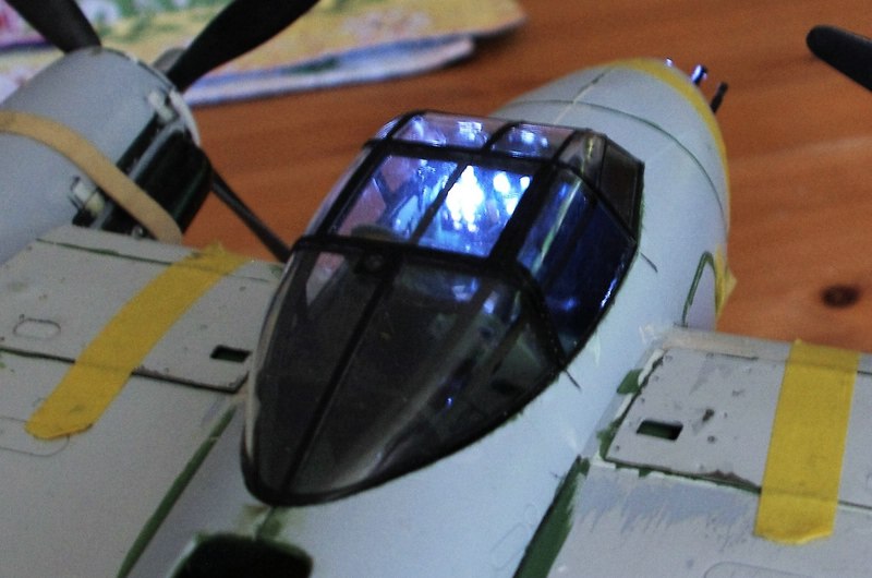 Ich befürchte aber das es doch noch ein Monat dauern wird bis alles passt und dann muß noch aussen lakiert werden. Es wird Ja ein Night Fighter. Also Schwarz von Tamiya und Graphit Pulver beigemischt.