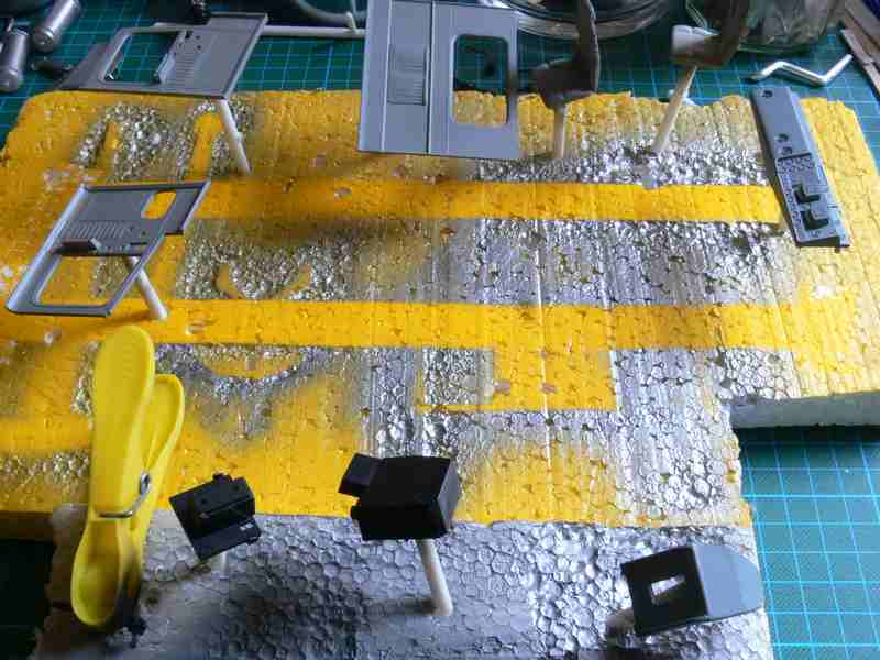 Bevor es dann mit der Hauptlackierung weiter gehen kann, lass ich alles in Ruhe trocknen, auch wenn schon ein paar Teile soweit fertig sind, will ich nicht zweimal anfangen müssen. Geplant ist die Lackierung dann für Donnerstag, wofür ich auch den ganzen Tag eingeplant habe, so mir nichts dazwischen kommt.
