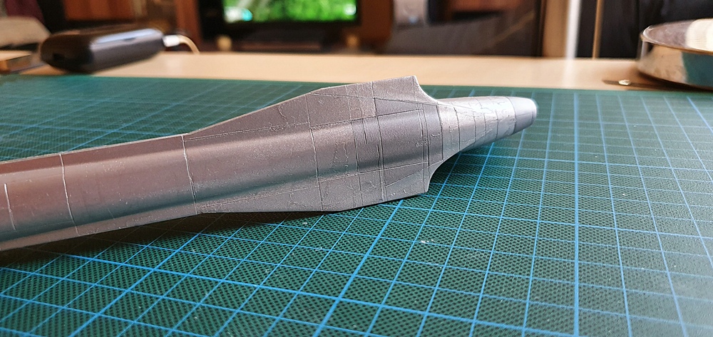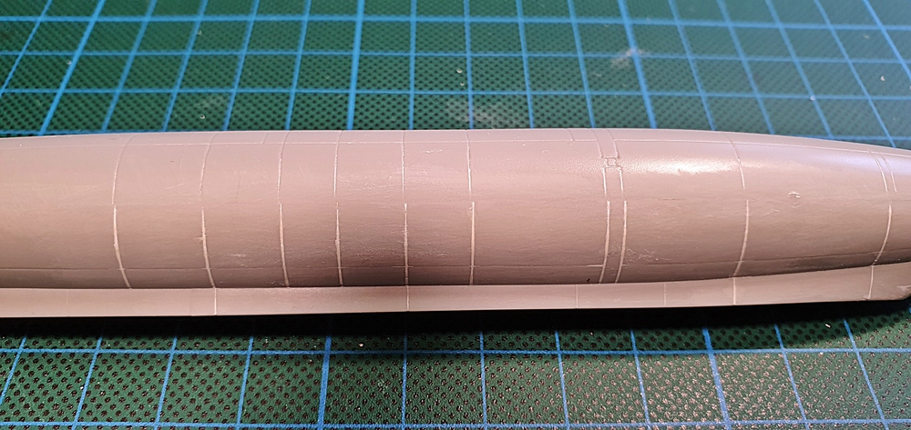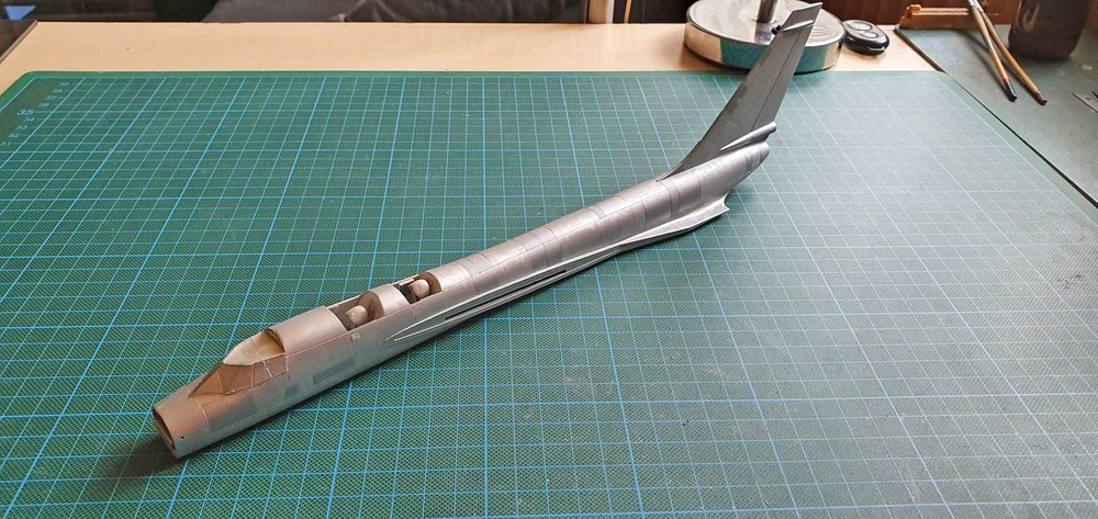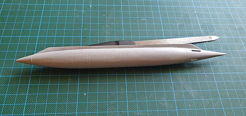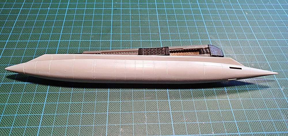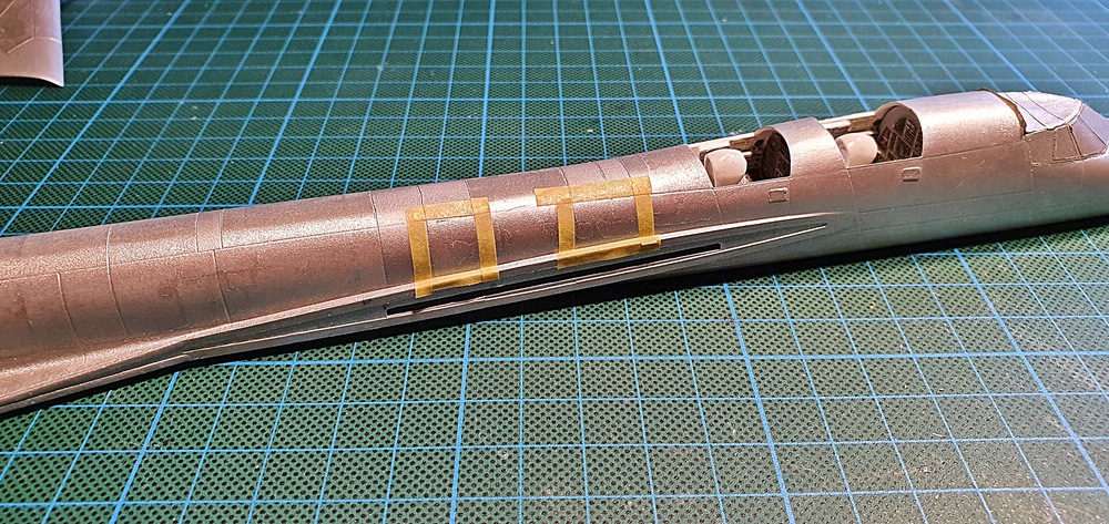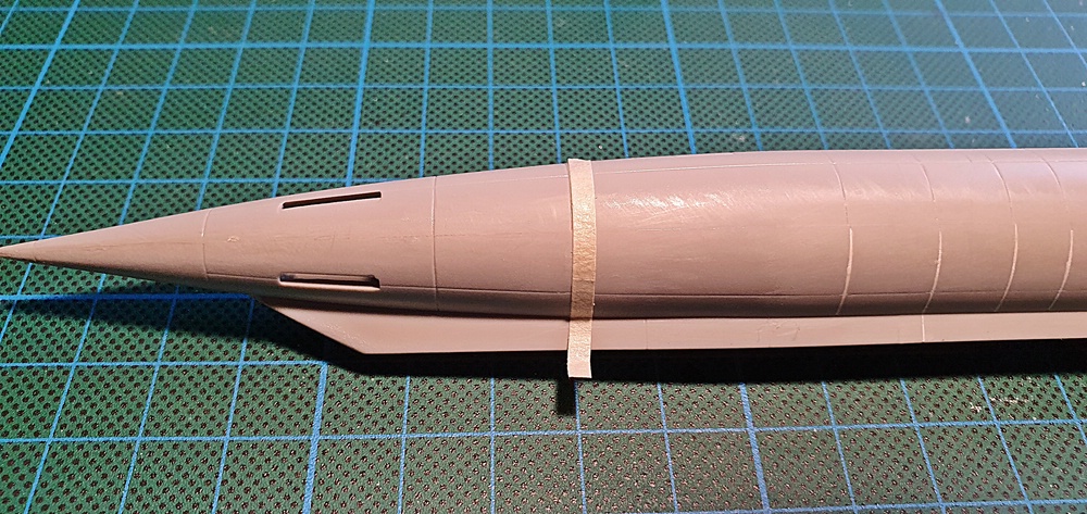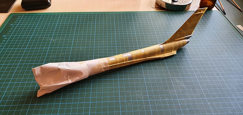 Nach dem das nun soweit fertig war, noch einmal in der komplett Ansicht, dann konnten die Lücken, mit Tape geschlossen werden und der Rumpf, nach vorne hin, wurde mit einem Stück Papier abgedeckt.