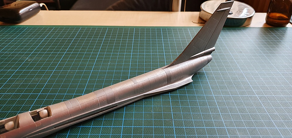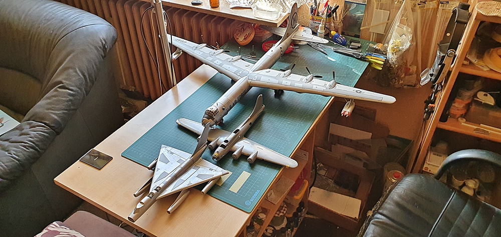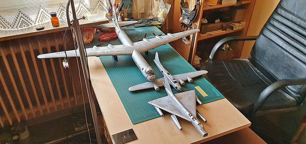 Nun heißt es aber erst mal einen Tag warten, damit die Farbe richtig Zeit zum trocknen hat, dann kommt, hier und da, Chromsilber, von Testors dazu und an den Triebwerksgondeln wird auch noch ein Bereich in Stahlfarbe abgesetzt, usw. usw.