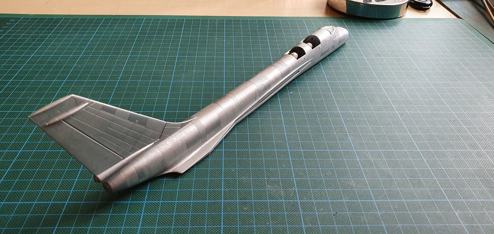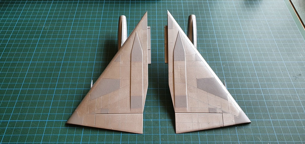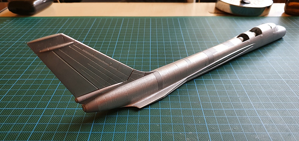 Danke, Felix und nein Alclad ist das noch nicht, sondern schnödes Alu 99 von Revell, das würde mir auf Dauer einfach zu teuer werden. Nur die anderen Alu/Silber Farbtöne sind dann von Alclad, bzw. Testors und polieren werde ich auch nicht, denn zum Abschluss kommt dann noch seidenmatter Klarlack drüber, also genauso wie bei „BigBird“ auch.