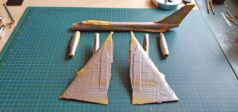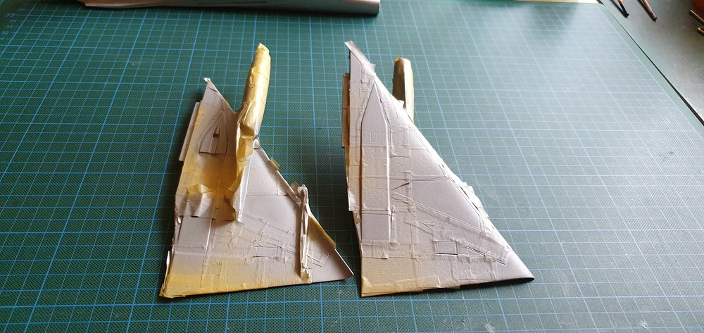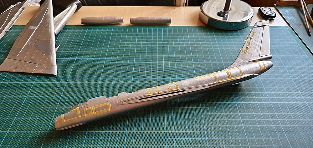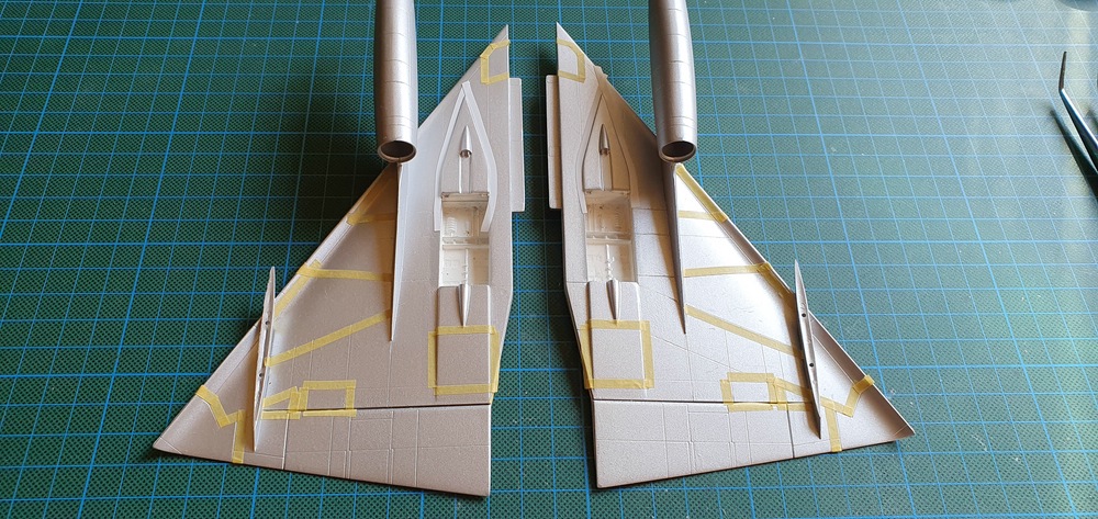 Und weiter mit den Tragflächen, zuerst wieder Konturen abkleben. :cracy: