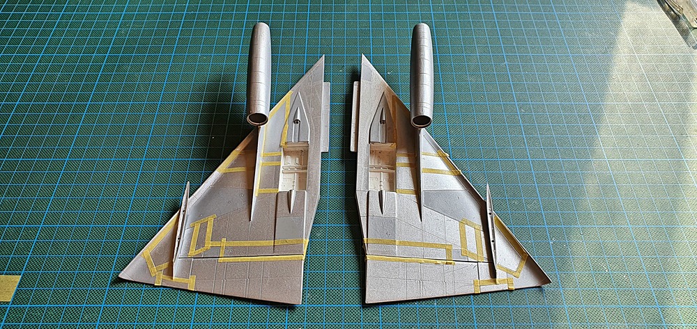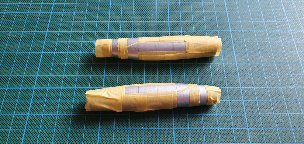 Nun mussten aber noch die Zwischenräume, abgeklebt werden und da die zwei noch nicht verbauten Gondeln schon mal da lagen, habe ich damit begonnen.