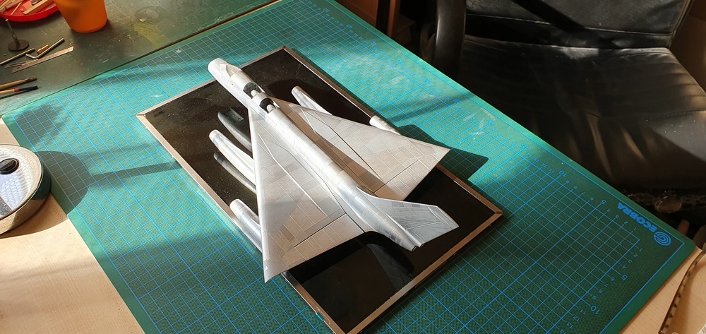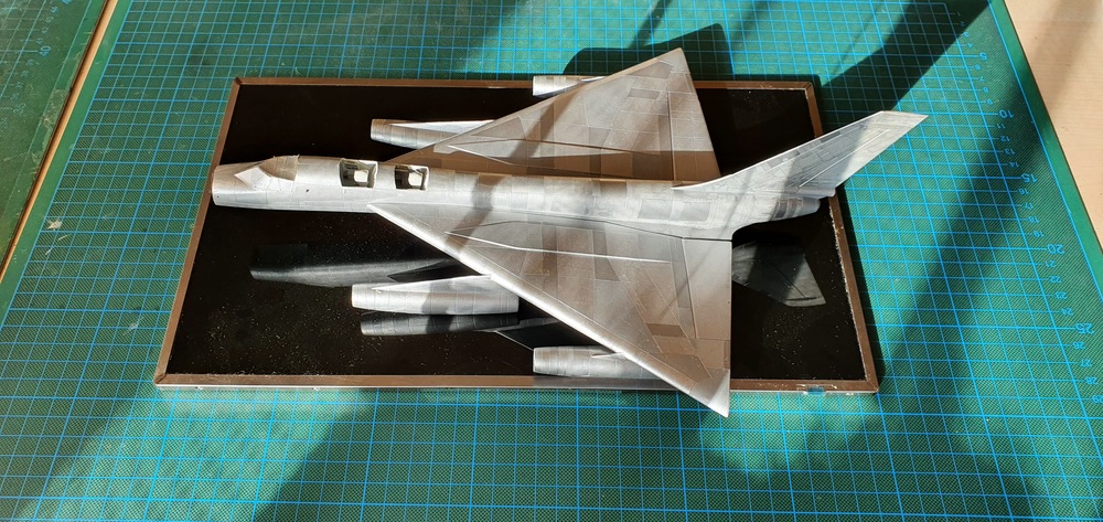 Sehr gut. Blaue Pappe? Hat was. :) am Ende panel line wash? Würde das ganze auf jeden Fall noch schön betonen, mit den verschiedenen alu tönen.