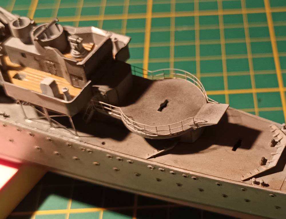 Diese werden nun für Flaggstöcke genutzt!Mir ist allerdings schleierhaft, warum die Stellen mit Putty nach der Bemalung mehr Weathering angenommen haben als das umgebene Areal...