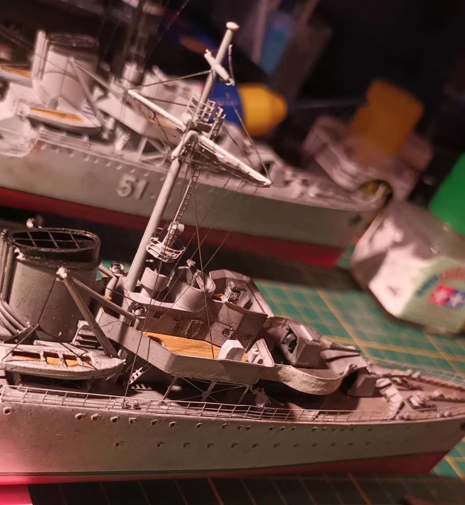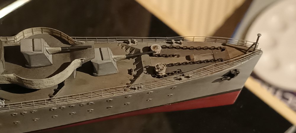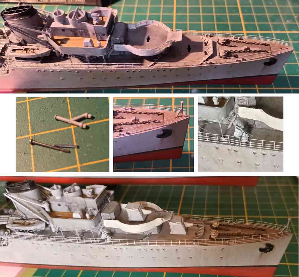 Alles klar, vielen Dank! Ich überlege mir was ich mache. Werde die Minenladung aufstocken. Mit den Booten überlege ich mir was ich mache. Da habe ich jetzt beschlossen meine künstlerische Freiheit walten zu lassenSodele, mehrere Fotos von Zerstörern mit voller Minenladung gefunden (gezählt habe ich sie nicht), auf allen sind die Boote nicht an Bord. Wieder was gelernt!
