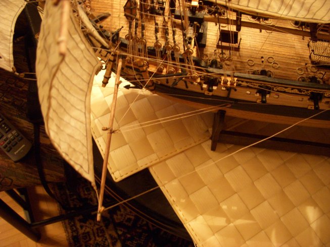 was ich aber jetzt sofort machen würde: Das Boot muß in einen sicheren Hafen , hinter Glas oder bis zur Fertigstellung der Seilrollen auf einen Schrank. Ich seh schon wie Deine Frau beim Staubaugen nicht aufpaßt ich - schwupps - liegt es auf dem Boden - das wär ein Jammer - 1 Besucher