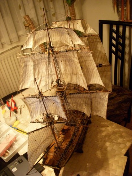 aber kürzen geht noch immer, wobei ich hab die immer recht lang in Erinnerung...und dann hab ich noch eine Flaggenstange am Bug montiert, hab ich in nem Buch gesehen, da kommt eventuell die einzige Flagge bei meinen Schiffen dran