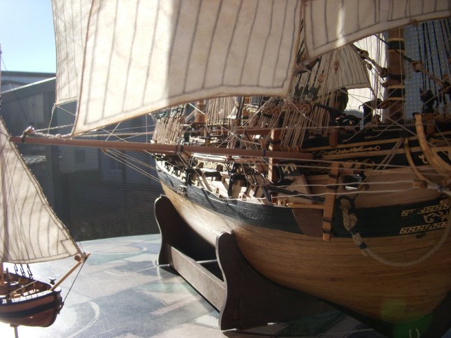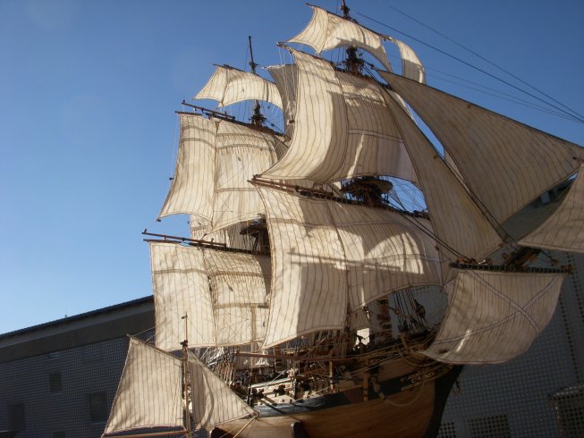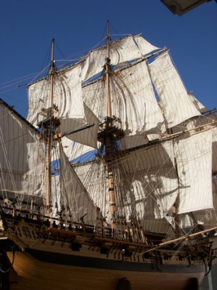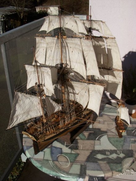 ) die baut grad ein Franzose. Victory ist nicht so mein Ding und bei einem Barockschiff mach ich mir vor den Schnitzereien in die Hose. Bei Dreidecker und Barock würde also nur Scatch in Frage kommen, hab ich zwar auch schon gemacht aber da hatte ich noch eine richtige Werkstatt zur Verfügung. Es gibt da ein Schiff von dem träume ich schon seit meiner Kindheit. Es war die "H.M.S. Britannia 1682" ein Barockschiff. Ich hab da nur einmal ein Bild gesehen und es gibt auch nur ein Modell (Nachbau) weltweit davon, hat ein (ich glaube) Amerikaner nach einem Museumsmodell und Photos nachgebaut, ein Traum