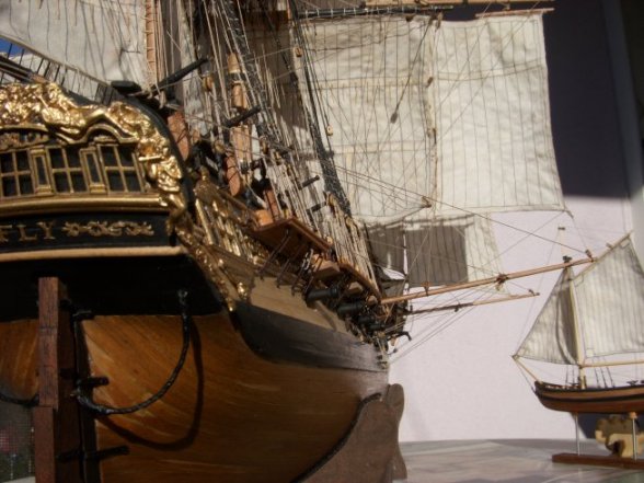 der Heckspiegel was voll mit Schnitzereien und Figuren und vergoldet und er hatte so schöne innen liegende Balkone, das wär es, da würde ich sofort wieder anfangen