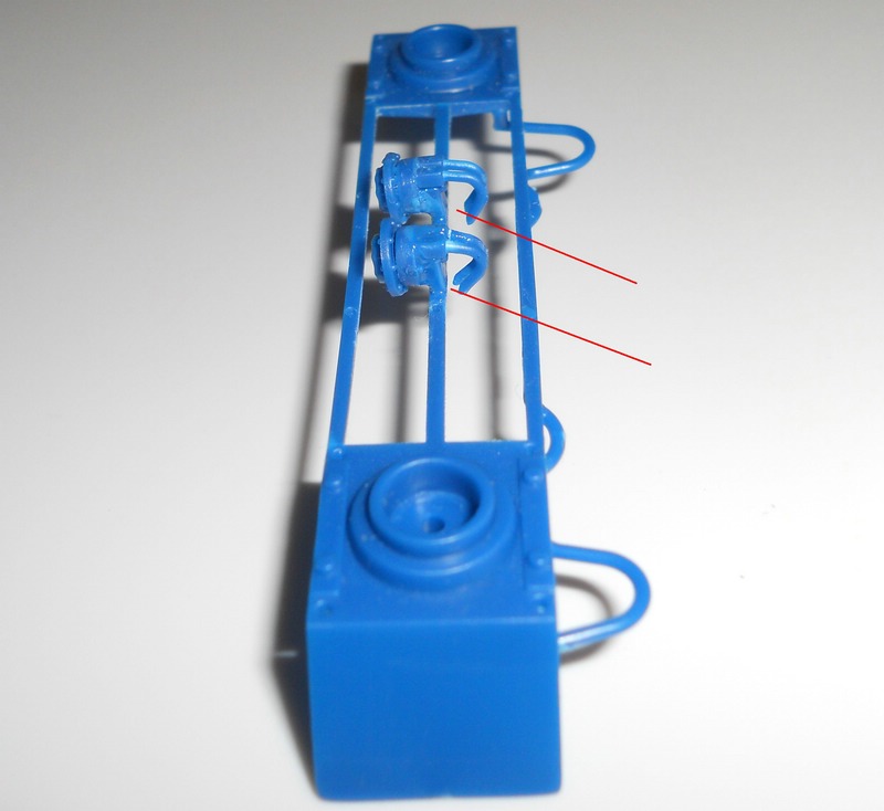 Laut Zeichnung sollen die Leitungen an den Martinshörnern an die bereits montierte Luftleitung angeklebt werden, aber die befindet sich wie in der Zeichnung zu sehen unter dem rechten Steg.