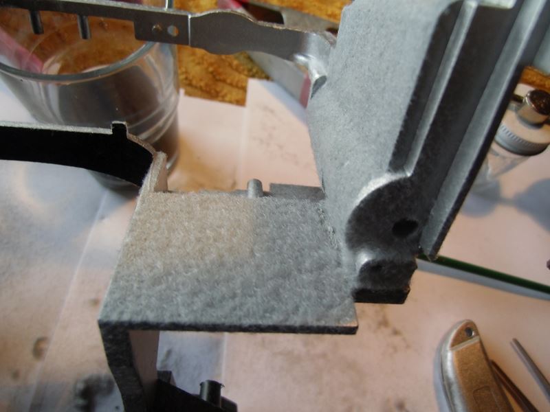 Dann weiter mit der fertig zusammengebauten Heckpartie mit den hinteren Kotflügeln, Heckklappe und der angeschraubten Dachpartie. (Sektion 2)