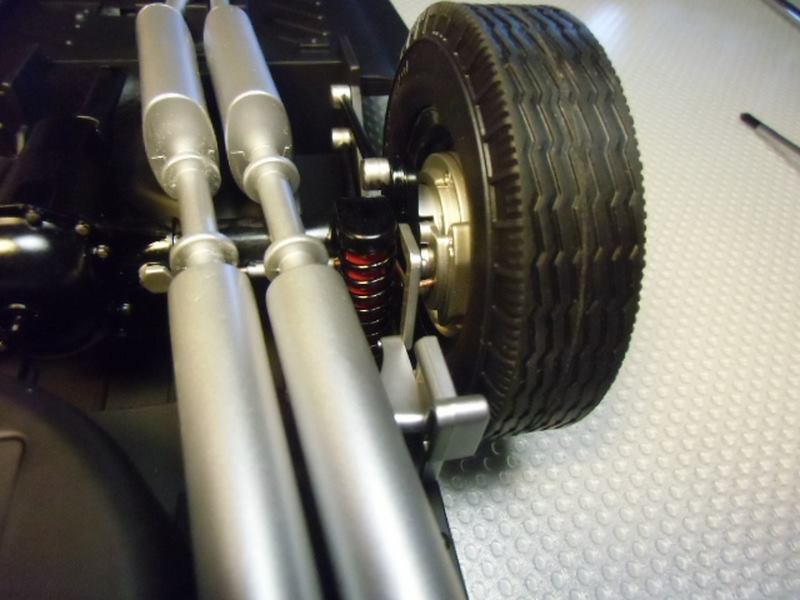 Weiter mit dem komplett fertigen Teil der Chassisgrundplatte aus Plastik mit der Hinterachse und Kardanwelle. (Sektion 4)
