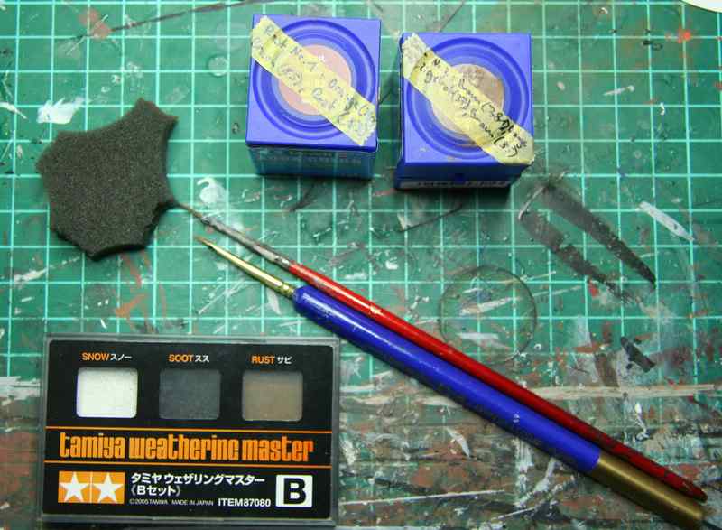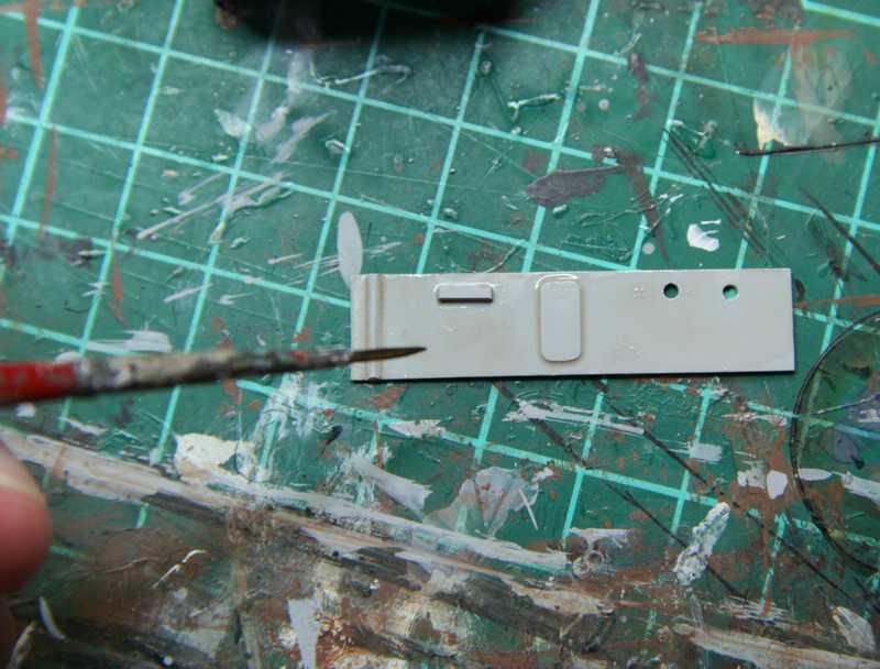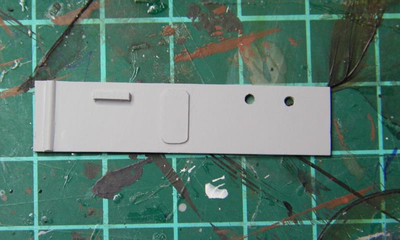 hab ich den Klappen auch noch ebensolche aus Ätzteilresten verpasst - Auf dem Foto kann man die aber nicht so gut erkennen, weil auf der Oberseite der Klappen noch ein bisschen Farbe hängen geblieben ist. Am besten sieht man die Scharniere der beiden linken Klappen: