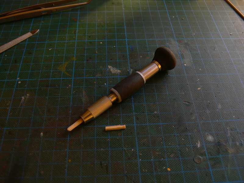Dann ging es ans Bohren und Feilen, auch hatte ich mir schon mal vier Röhrenstäbe zugeschnitten, 1x 2mm Durchmesser und 3x 3mm Durchmesser, etwas länger als gebraucht. Sie geben dem ganzen von Anfang an mehr Stabilität, auch sind sie etwas länger als benötigt, das wurde später angepasst.