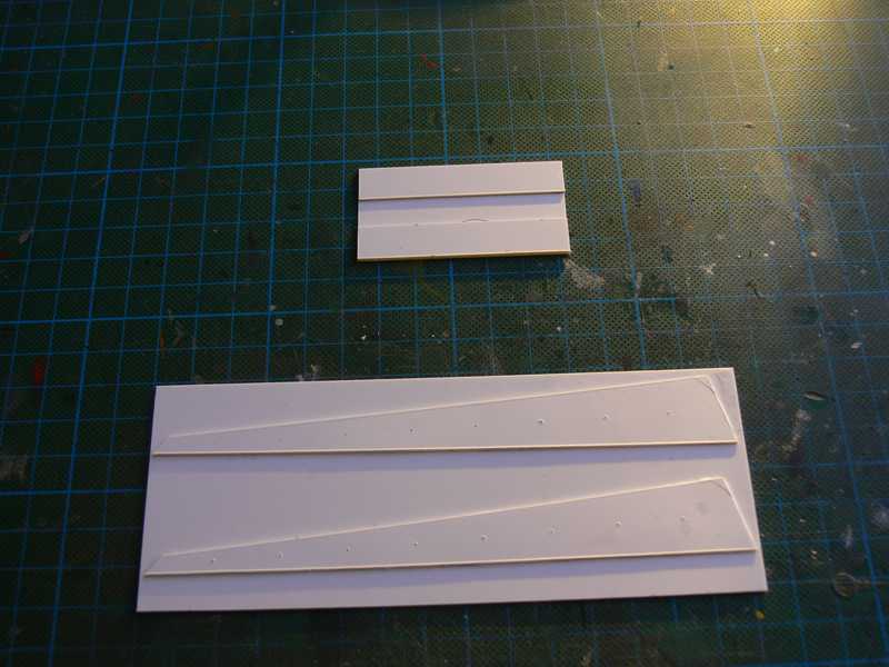 Dann wurde noch eine Ummantlung, der Verstärkung, aus 0,5mm Sheetstreifen angebracht, leider hatte ich auch da nichts mehr was lang genug war, somit wurden es je zwei Streifen pro Seite. Die Stoßkanten wurden anschließend verspachtelt und geschliffen.