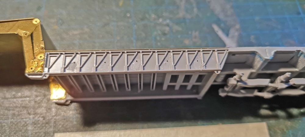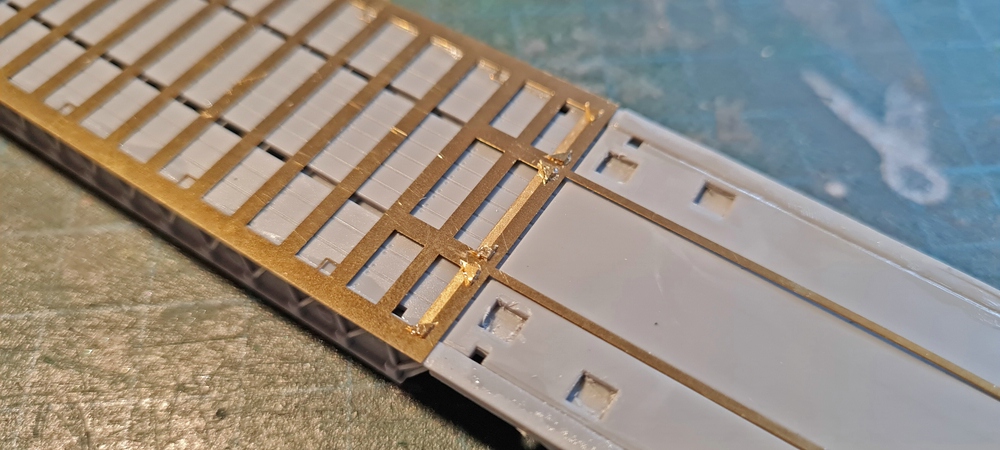 Danke dir Sascha, ja ich bin auch zufrieden und zum Glück ist die vorhandene Fläche schon sehr flach und raus nehmen war zum einen nicht vorgesehen und zum anderen, wäre das jetzt zu instabil, dafür hätte man den Trailer wirklich komplett neu in Messing machen müssen, nur dafür fehlt mir einfach das Werkzeug und ich bin so schon zufrieden das alles soweit gut gelungen ist.