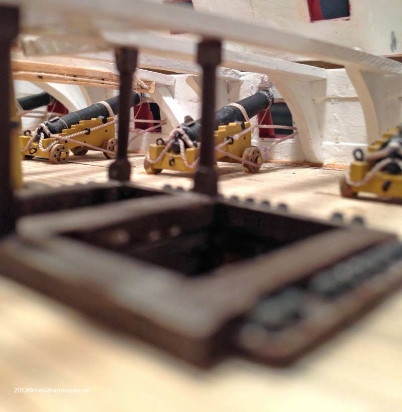 Dann auch noch einige Unwesentlichkeiten für ein Schiff dieser Art: Die ersten zehn Geschütze sind angeklebt - dazu erst ein Mal die Dinger verbrooktaut :-)