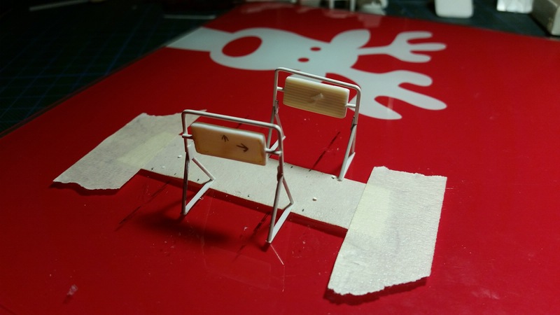 Als nächstes wurden die Bretter, mit je 2 kurzen Stücken, an den Enden, miteinander verleimt, dann wurde zu erst mit Revell dunkelblau 54 lackiert. Nachdem das trocken war, kam dann das Vallejo hellblau drüber. Das wurde dann später mit 240iger Schleifpapier angeschliffen.