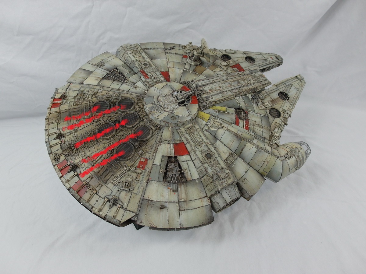 Der Todesstern-Ausschnitt wird genauso gut wie der Falke selbst. An deinem Ausschnitt kann man auch gut erkennen, dass der Todesstern technisch gar nicht so weit entwickelt war, wie behauptet. Für die Bordelektrik habe ich eine 12-Volt-Batterie ausgemacht.