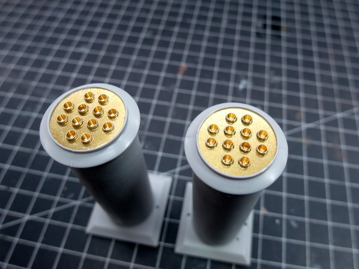 Genau so mach ich das ja eigentlich auch. Daher kam dieses mal die lange Pause. Ich hatte die acht Geschütze fertig, die ich für diesen Bauabschnitt brauchte. Dann stellte ich fest, hoppla die sind zu hoch. Also zähneknirschend die nächsten acht gemacht.Bei sowas (152 Rohre 25mm..) habe ich mir angewöhnt, etappenweise vorzugehen, zwei Geschütze zu Beginn jeder Bastelsession, danach was anderes. Ist besser für die psychische Gesundheit..