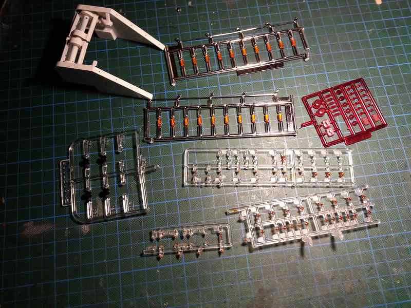 Die 8 großen Leuchten, an der Kranverkleidung, die im Bausatz vorgesehen waren, habe ich gegen kleinere ausgetauscht, dazu kamen dann noch weiter Leuchten an der Seite.
