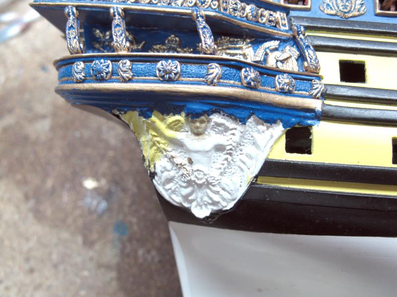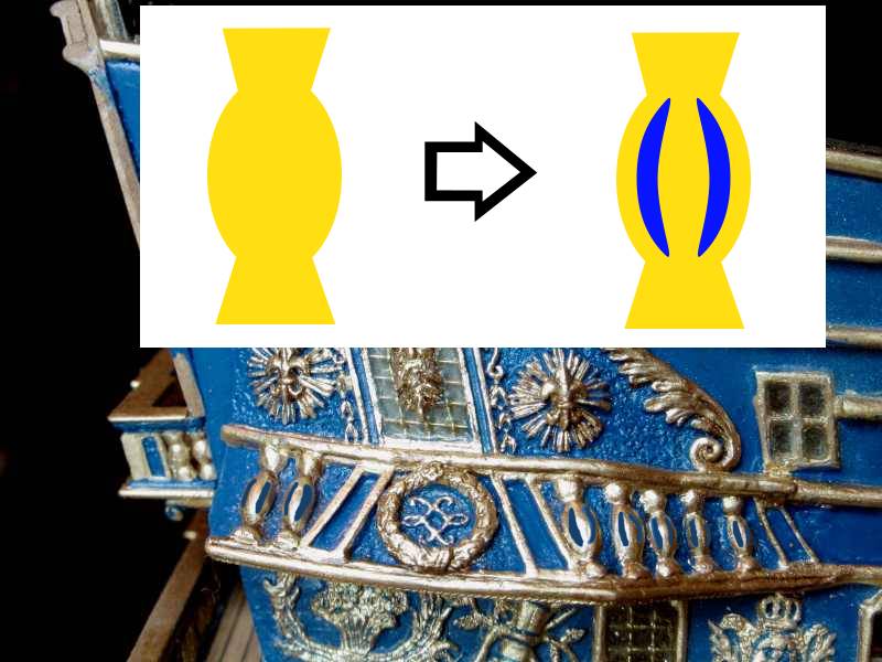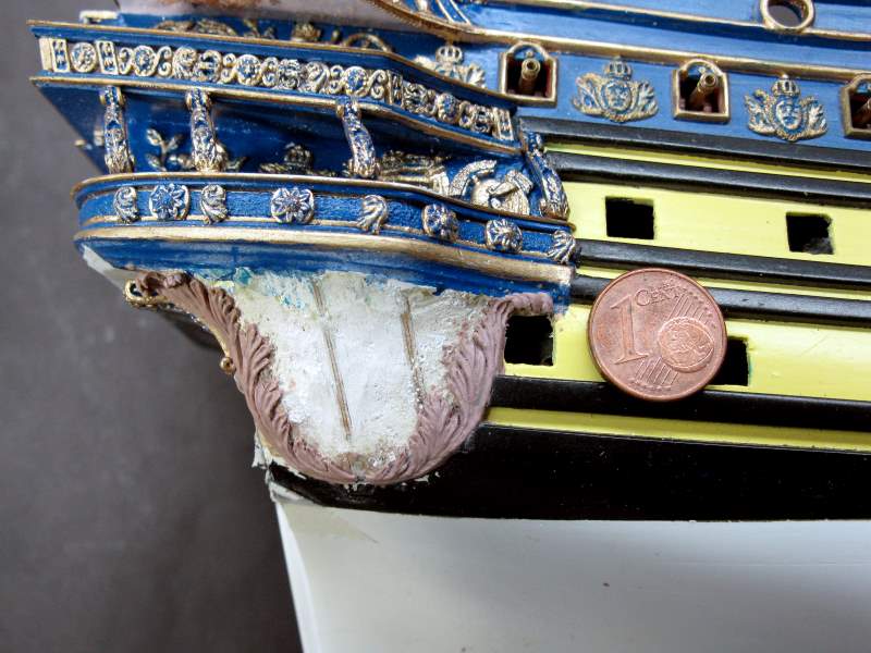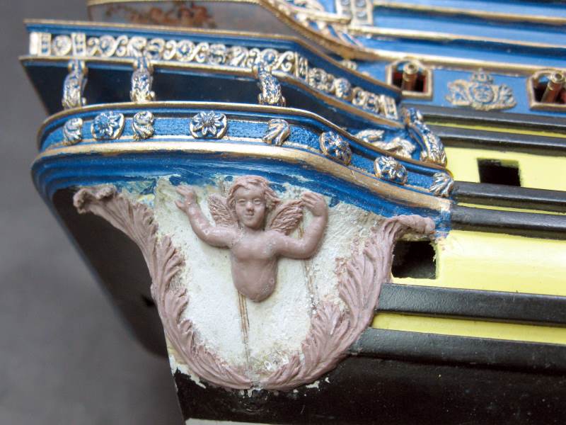 . Was mir am Vorbild auch nicht gefällt, sind diese komischen "Libellenflügel". Deshalb bekommen auch diese Putten, wie schon die am Galion, richtige Engelflügelchen mit Federn wie sich das gehört