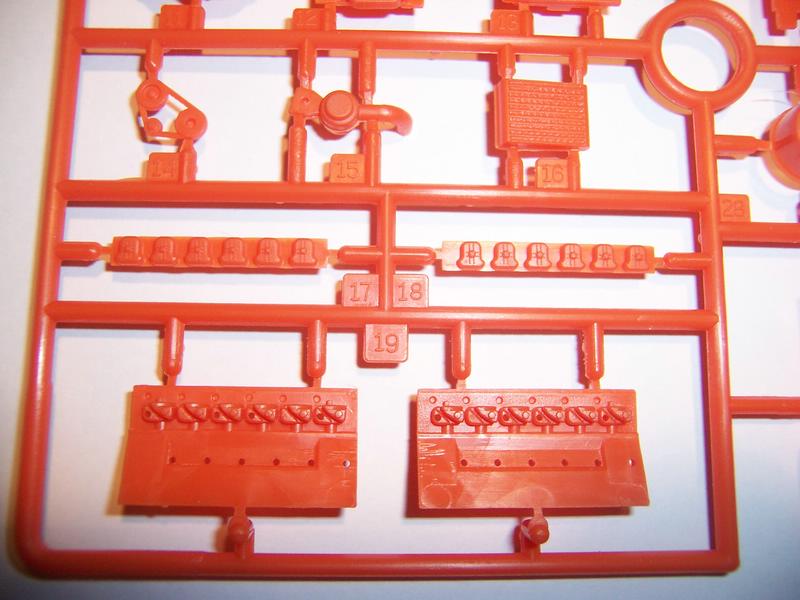 Spritzlinge: 11 + 1 Ätzteilplatine + Ladefläche + Kabine + 22 Reifen + 1 Beutel mit Achsen und Federn + 1 Beutel mit Schläuchen und Kabeln