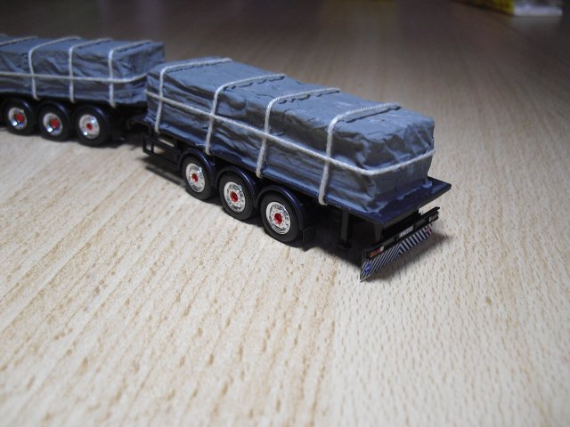 hallo leute, hier ma 2 neue, der thomsen hat nur farbige gläser vom lampenbügel bekommen, sowie ne dachklima bischen tiefer, der trailer hat noch ein schmutzlappen bekommen,das war es auch schon, der actros nur ne dachklima, der trailer noch ne dritte achse, die ladund sind dünne röhrchen die bischen farblich gestaltet wurden, hier ma die bilder.......