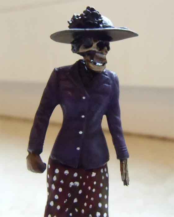 Herminator hat mich nebenbei noch bisschen munter gehalten und nebenbei wurde der Pinsel geschwungen. Bis auf den Kopf ist der männliche Part der Vignette fertig. Er gab auch ein perfektes Ziel für Teile aus der Restekiste ab. Genau wie die Frau erhielt er einen Hut (er: Modell "Bayern" mit Gamsbart, sie: extravagant und XXL mit Blümchen). Bisschen trübe draussen gerade, hoffentlich krieg ich genug Licht für die Fotos.